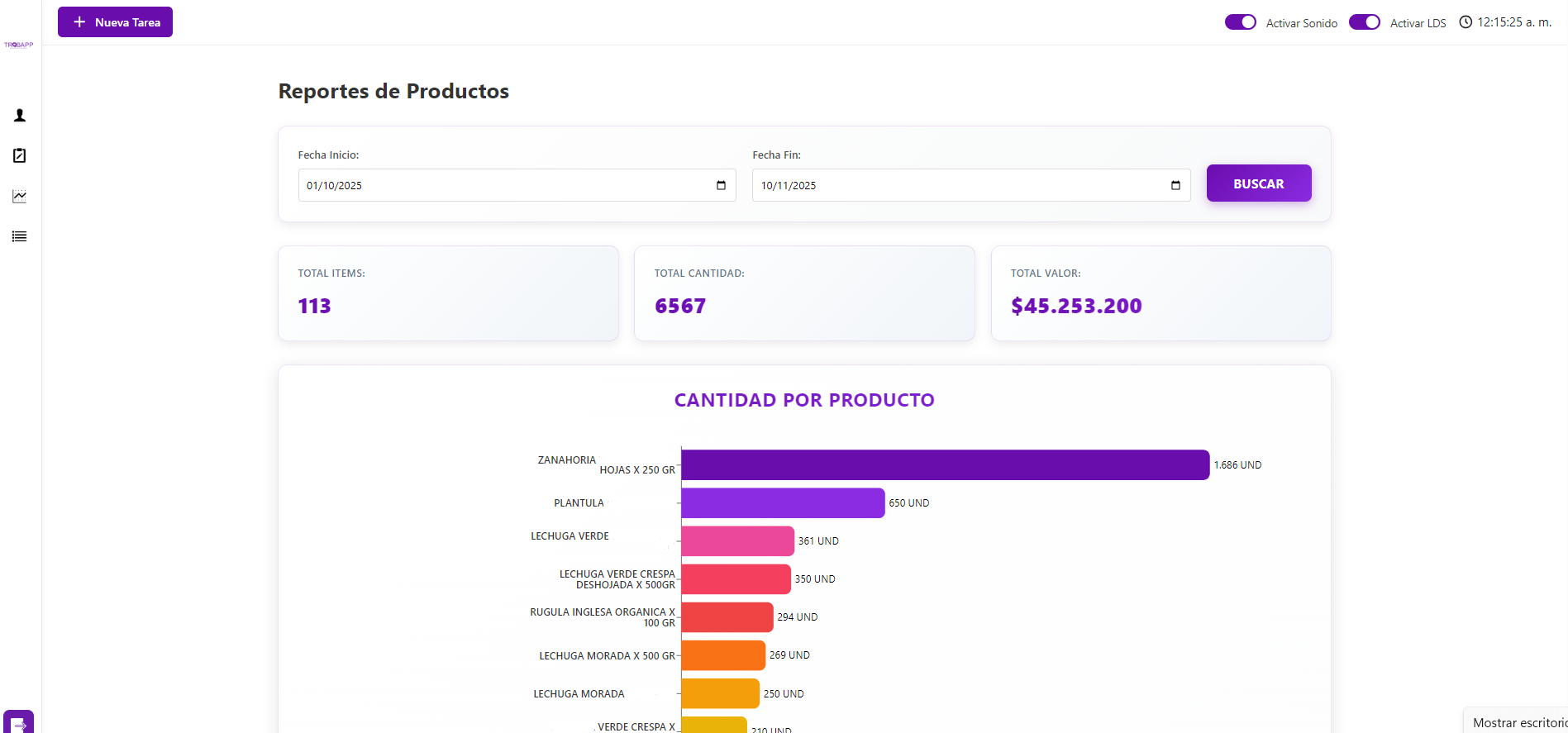 Estos reportes son dinámicos y se pueden filtrar por rangos de fechas para obtener análisis personalizados.